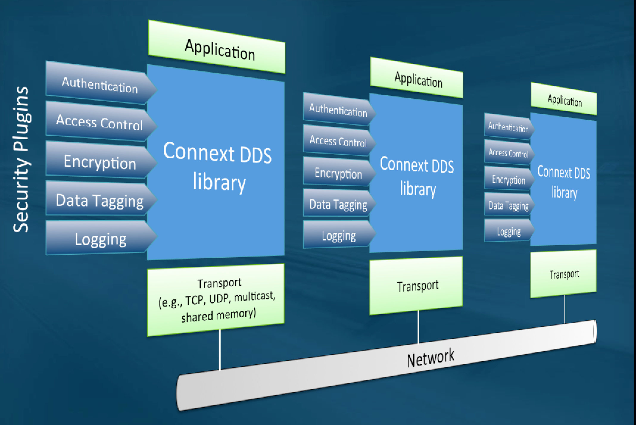 So RTI’s Connext DDS Security includes authentication, access control, encryption (using encryption standards), data tagging (user-defined tags), and logging.