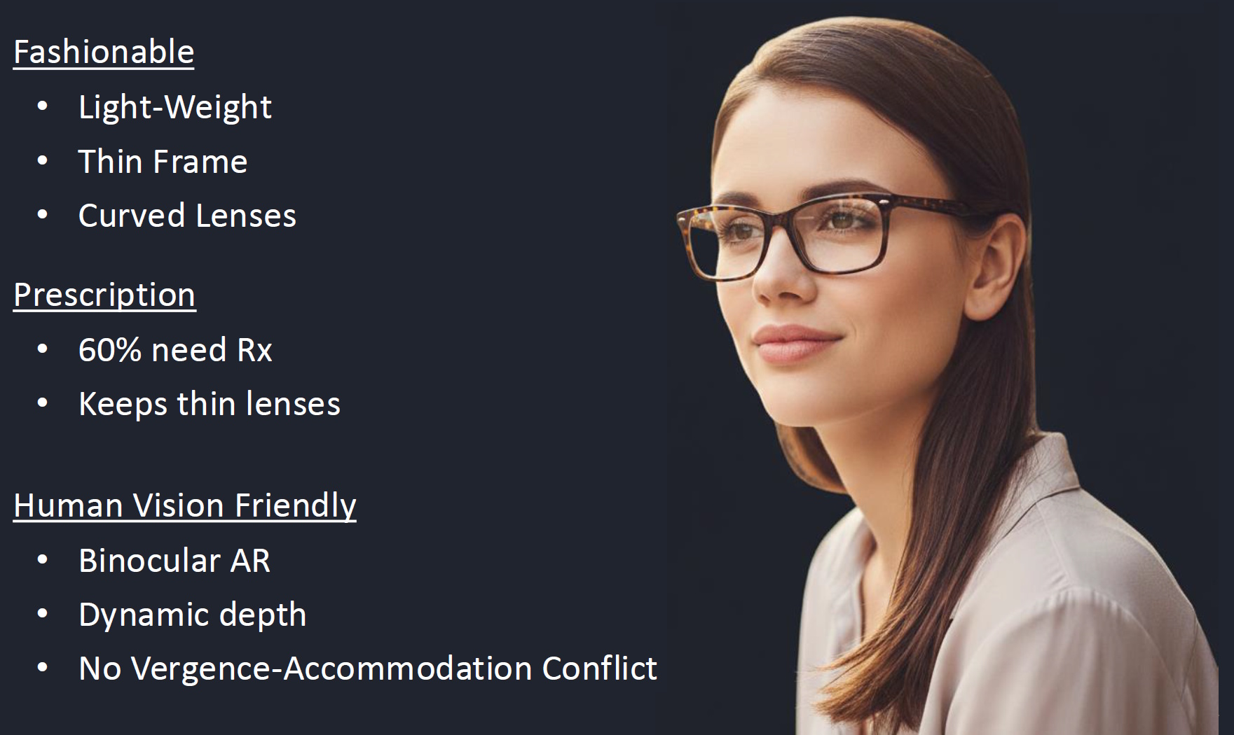To succeed, such glasses must be lightweight, thin, compatible with prescription lenses, and—above all—comfortable for all-day wear. That means delivering binocular augmented reality with realistic depth cues and eliminating the notorious vergence-accommodation conflict that plagues many existing displays. Achieving all of this simultaneously is an extraordinarily tall order. Which brings us to the fact that I was just chatting with Mike Noonen, who is the CEO of Swave Photonics.
