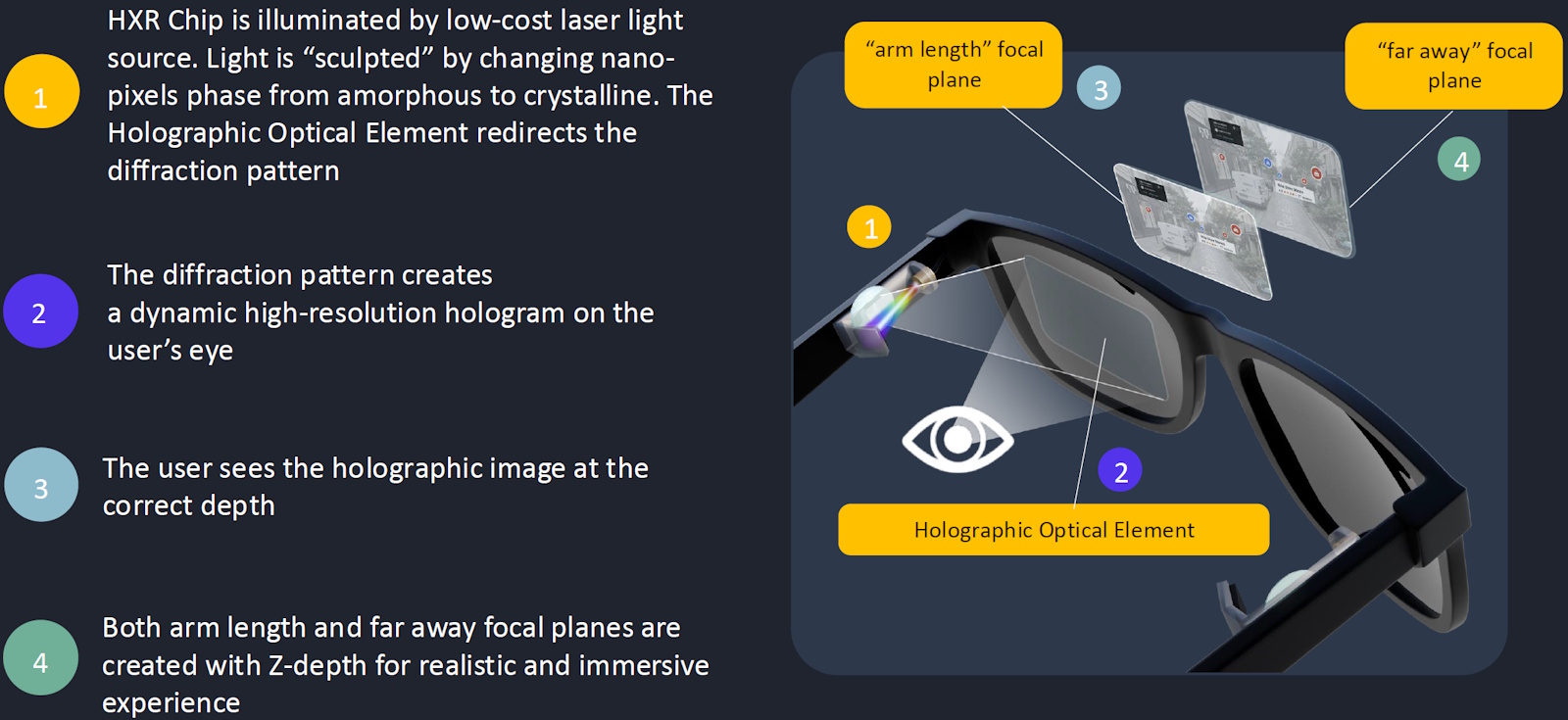 Because holography can place imagery at natural focal distances—and because the phase-change pixels are inherently energy-efficient—smart glasses based on this approach could, in principle, weigh less than 50 grams, operate for an entire day on a single charge, support prescription lenses, and avoid the bulky waveguides that have constrained many previous designs.