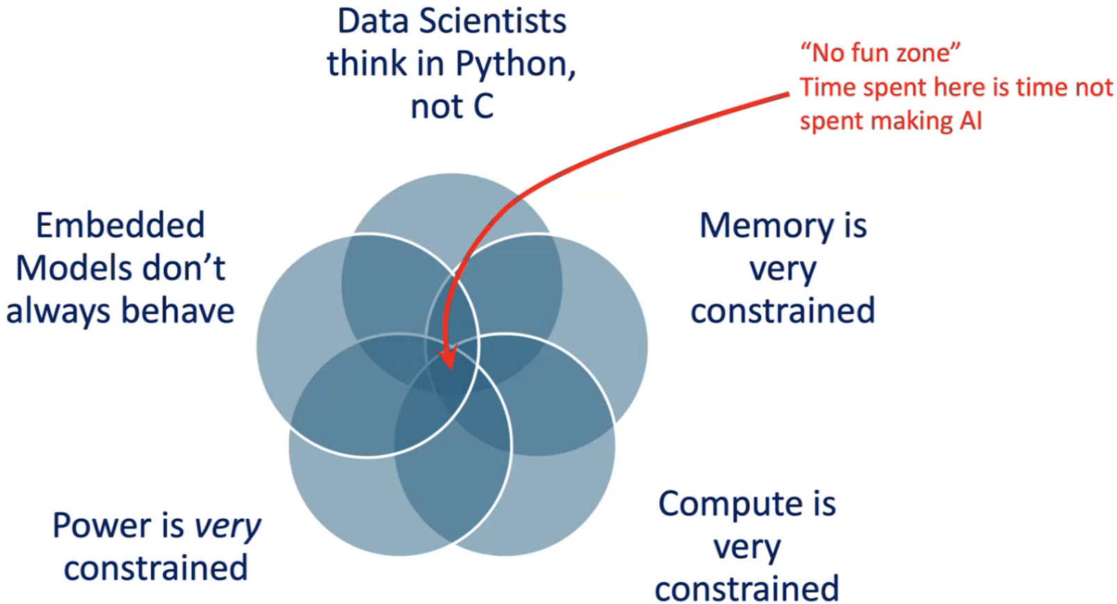 We’re still setting the scene. The focus for Ambiq’s chips is AI in embedded space and at the edge where the “internet rubber” meets the “real-world road.” Sad to relate, the data scientists who create most of the AI models typically come from the laptop world, if not the server world. They are used to running things in Python, not C. They like to have a file system, which isn’t guaranteed in embedded space (where no one can hear you scream). They are also used to having large amounts of compute, memory, and power, so you can only imagine their reaction when they find themselves in the “no fun zone.”