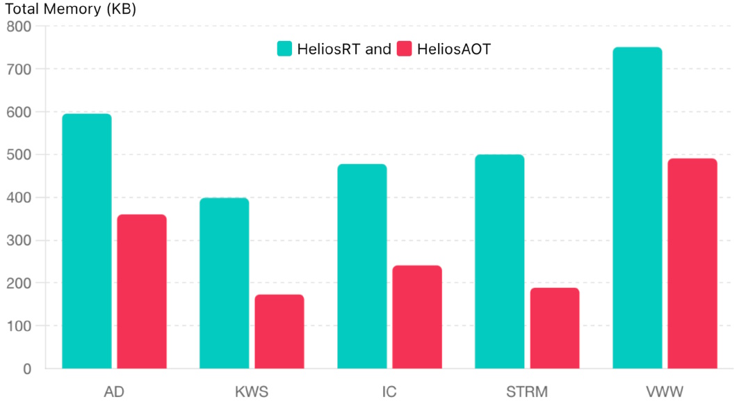 This HeliaAOT flow offers the same or better performance as the HeliaRT flow, but with a much smaller memory footprint.