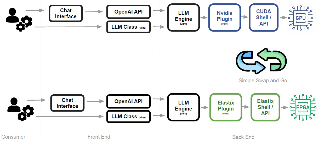 The net result is what the guys and gals at Elastix describe as a “simple swap and go experience.” From the consumer/user’s perspective, the front end and application logic remain unchanged, while the back end transparently transitions from GPU-based execution to FPGA-based acceleration. In other words, you keep your existing workflows, tools, and APIs while gaining the benefits of a more efficient, reconfigurable inference engine without any of the usual integration headaches.