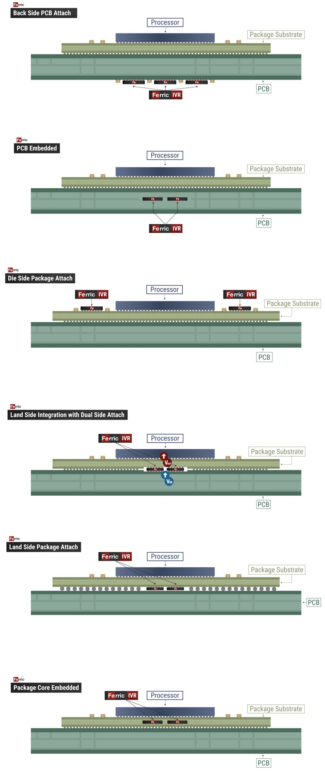 Today, Ferric’s IVR chiplets integrate everything required for a complete high- performance power converter: controller, power FETs, advanced magnetic inductors, and on-chip capacitors, all in a compact tile that can be mounted on the motherboard, on the backside of the package substrate, or embedded even closer to the processor.