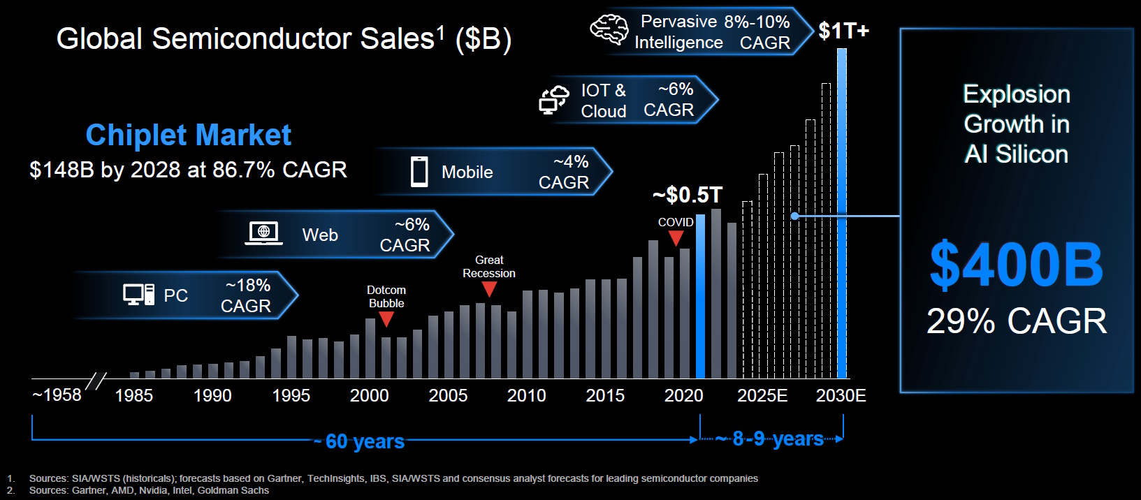 Today, we are talking about the growth of pervasive intelligence with an expected CAGR of 8% to 10%. Although it took us 6 decades to reach a global semiconductor revenue of ~0.5 trillion dollars, it’s going to take us less than a decade to grow another 0.5 trillion to reach 1+ trillion dollars.