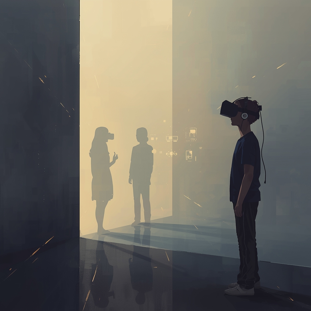 Standing at the boundary between physical solitude and digital companionship (Source:Leonardo.ai)